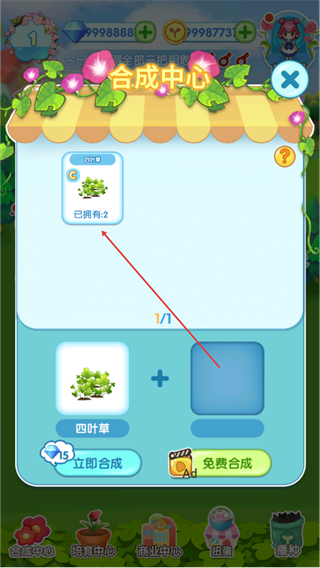 4、进入合成中心,选择已有植物,准备合成升级,提升植物等级。