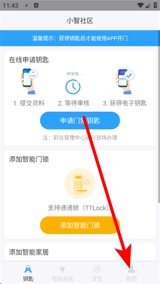 1、打开小智社区,点击底部我的,进入个人页面。