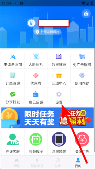 2、在我的页面,点击设置,进入设置界面。
