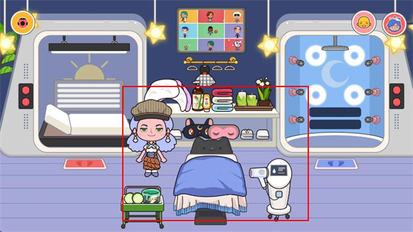4、完成形象设置后,来到包含床具等物品的区域,可互动相关道具来体验对应玩法。