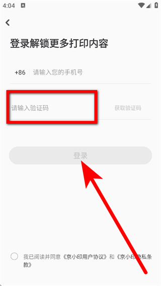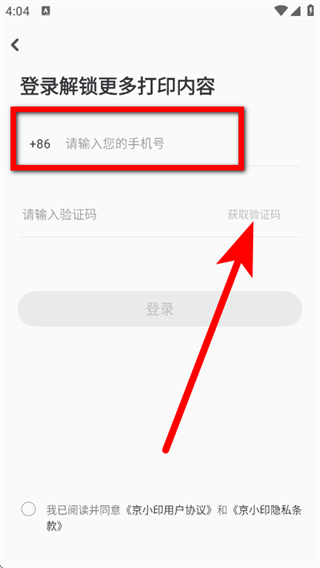 1、打开京小印,点击手机一键登录,进入登录页面。