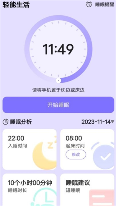轻能生活app是一款能够通过智能算法和传感器技术,实时准确检测我们的睡眠质量的手机软件,在这里它提供了详细的睡眠报告和分析数据,方便我们可以了解自己的睡眠情况,改善睡眠习惯,同时它还拥有多种放松音乐和冥想引导,助你轻松入睡,每天醒来都充满精力。