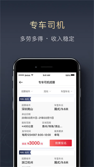 2、个体企业双适配,不仅面向顺丰内部员工开放,也欢迎社会个体司机注册使用,支持多车型灵活接单,满足不同司机群体的创收需求,解决准入门槛高,适配范围窄的参与痛点。