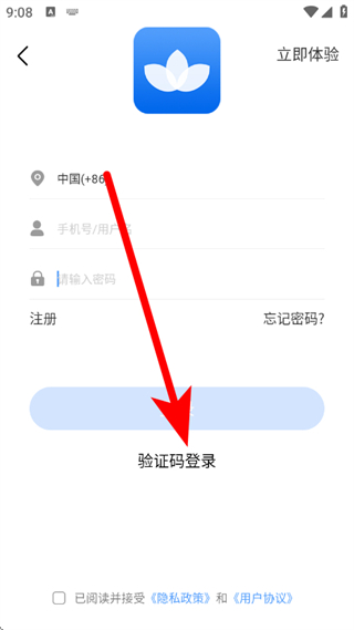 4、在验证码登录界面,输入手机号和验证码,点击登录,完成账号登录。