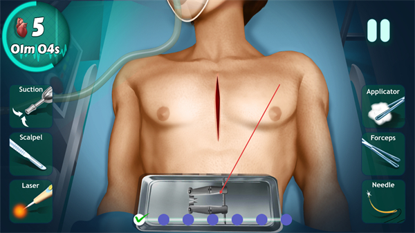 5、还原真实的医疗设备与手术工具,不同工具对应不同的手术操作环节,通过直观的操作方式模拟工具使用,增强手术过程的沉浸感。