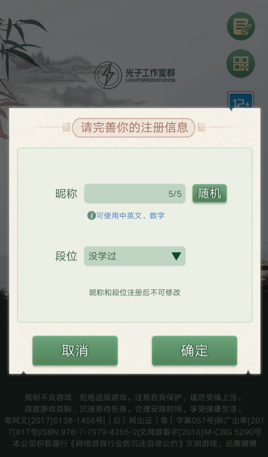 1、进入游戏界面,完善信息