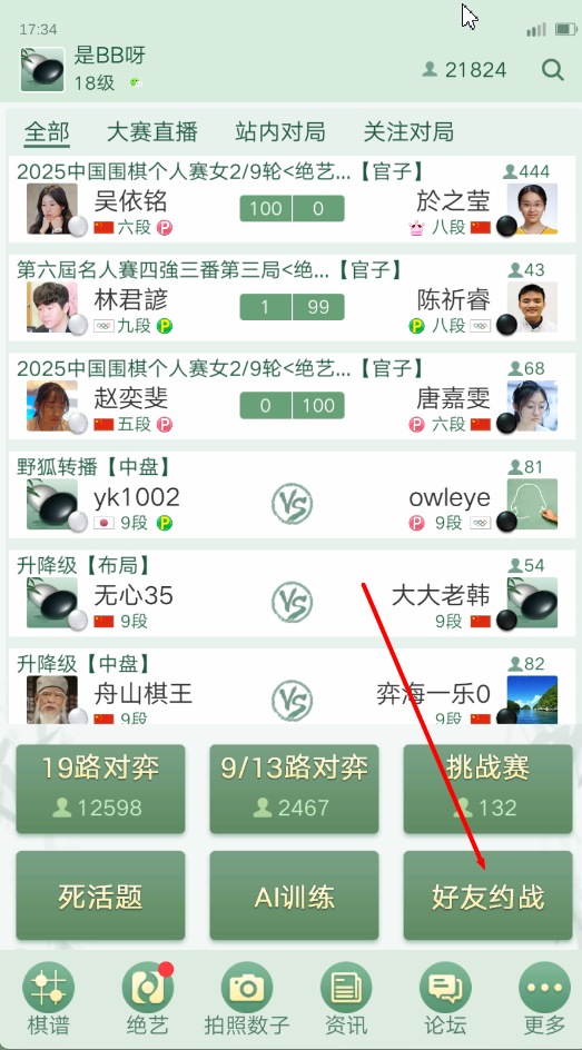 3、点击右下角好友约战