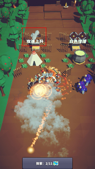 1、在探索关卡中,让小队触碰【攻速上升】道具,获取攻速增益,同时击败敌方单位推进进度。