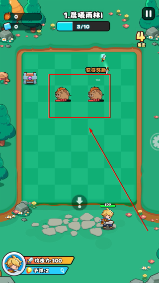 3、继续应对周围敌人,完成后获取宝箱奖励推进进度。