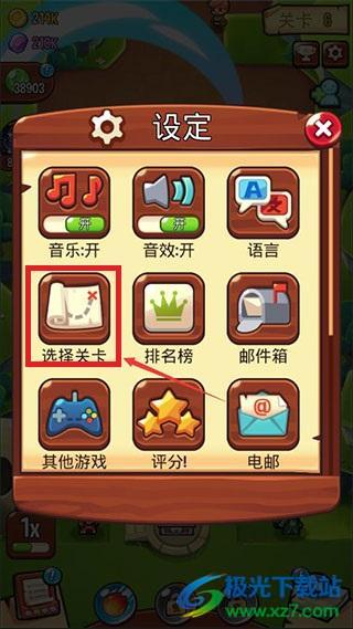 2、玩家能够在设定之中选择点击选择关卡按键。