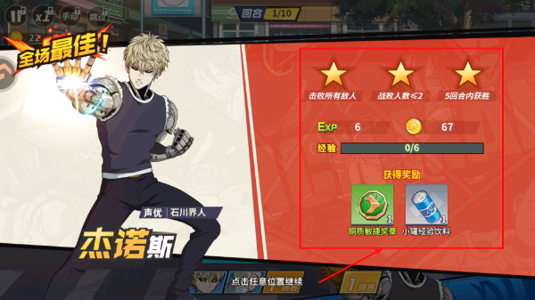 4、战斗胜利后可获得经验金币与道具奖励,达成三星条件能获取更丰厚的资源,助力角色成长。