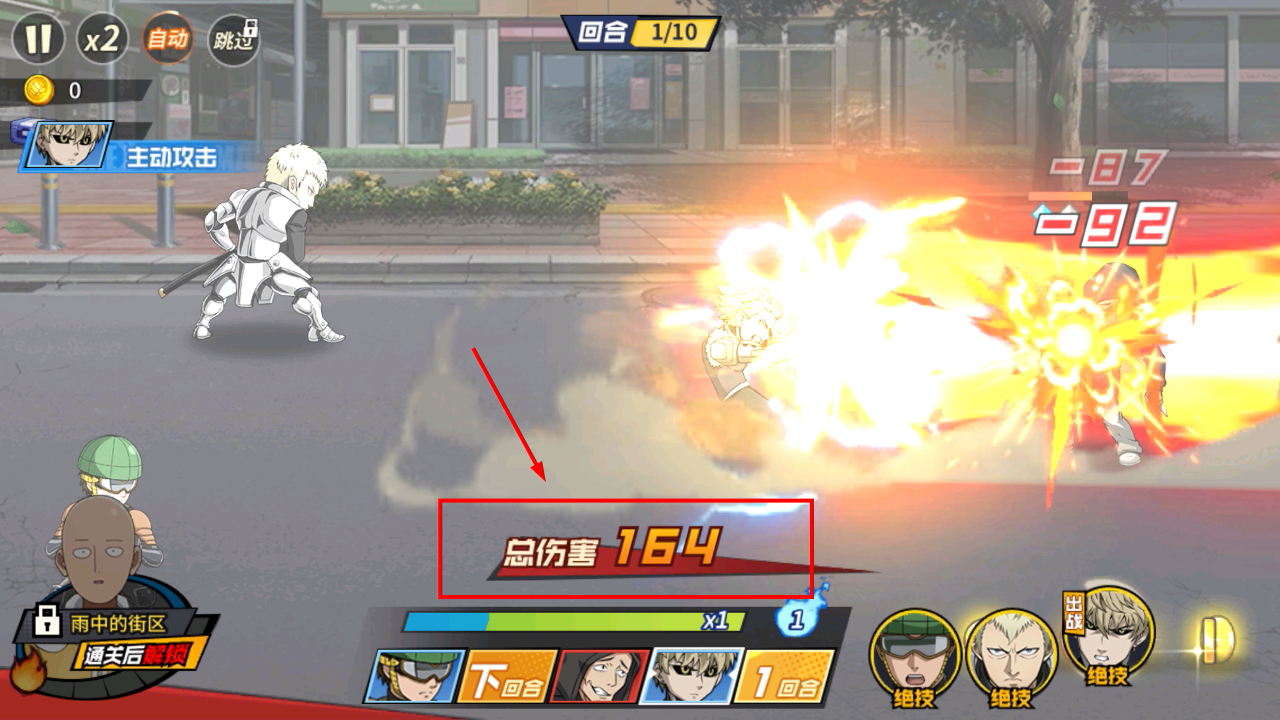 4、战斗中关注总伤害数值,如【总伤害164】能反映输出效果,合理释放技能提升伤害加快通关速度。