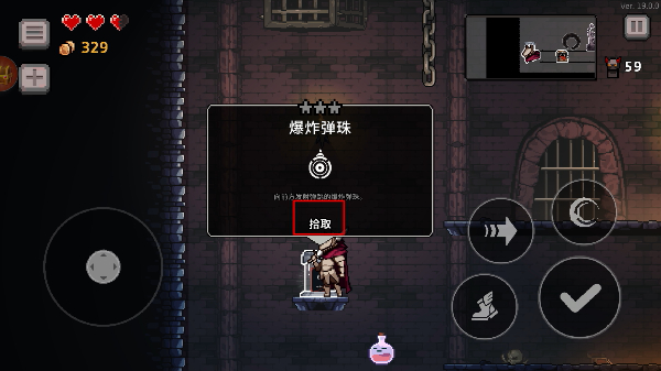 3、遇到【爆炸弹珠】道具时,点击【拾取】按钮获取该道具,提升角色的战斗能力。