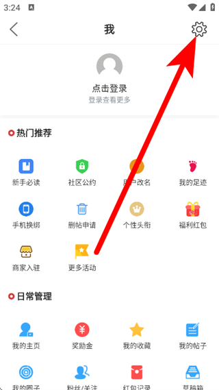 2、在我的页面,点击右上角的设置图标,进入设置页面。