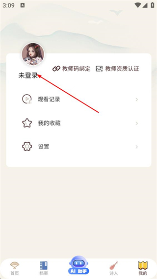 3、随后在个人页面,点击未登录区域,进入墨香研习的登录页面。