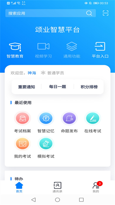 颂业智慧平台是学习考试、规章查询和教育培训管理的智能化服务平台。