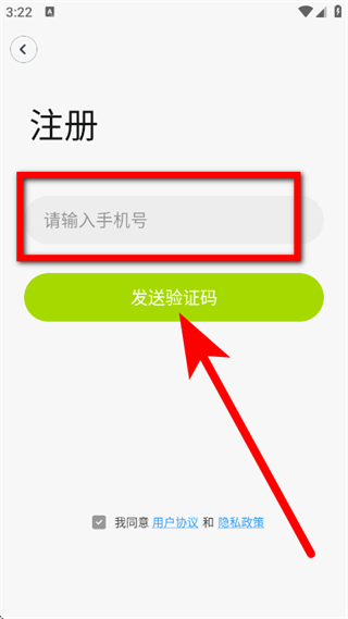 2、在注册页面,输入手机号,点击发送验证码。