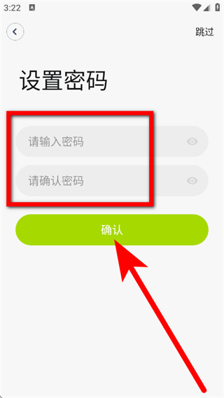 4、在设置密码页面,设置密码,点击确认,完成注册。