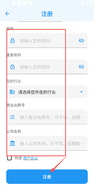 3、在注册账号页面填写其他信息,勾选协议后点击注册完成注册操作。