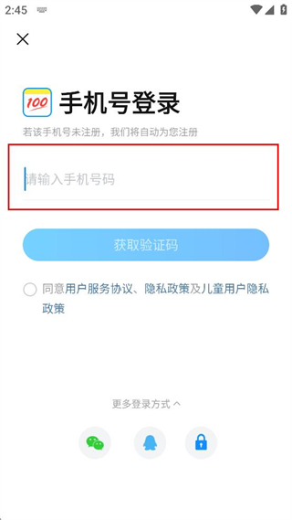 3、在手机号登录页面,点击输入框,在输入框内填写对应的手机号码信息。