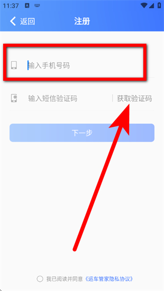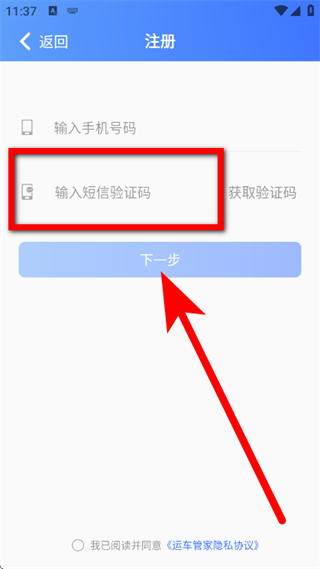 3、输入短信验证码,点击下一步,进入设置密码页面。