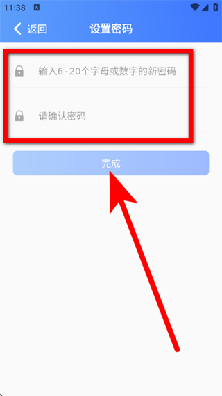 4、在设置密码页面,设置密码,点击完成,完成账号注册。
