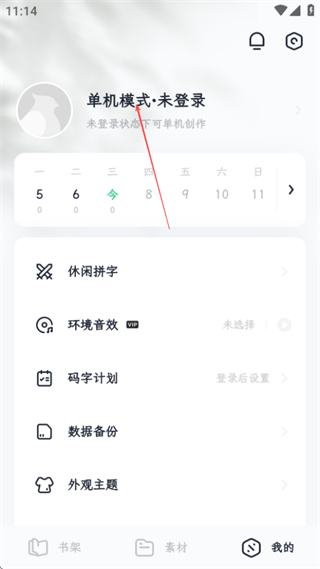 2、在个人中心页面,点击单机模式未登录区域,可进入登录页面。