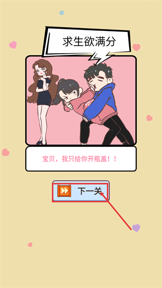 我老婆超凶是一款魔性搞笑的休闲解谜手游,以情侣日常相处为背景,玩家将化身男主应对各类突发状况与矛盾危机。游戏用轻松诙谐的方式还原家庭生活场景,通过趣味选择与脑洞解谜化解冲突,在捧腹大笑的同时感受相处的智慧与乐趣。内置提示系统,遇到难解的困境时可点击获取指引,降低解谜门槛,让不同水平的玩家都能顺畅体验。