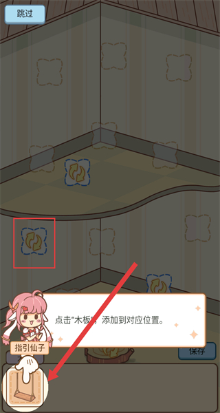 4、在房间布置界面,点击底部的“木板”,将其添加到场景内对应的位置,完成房间装饰布置。