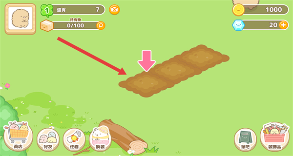 2、进入游戏主界面后,画面中的土地区域,准备开展种植相关操作。