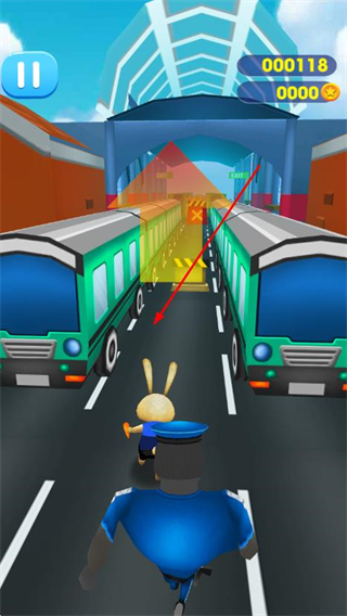 2、在关卡中控制角色移动,躲避道路上的障碍,持续向前奔跑。
