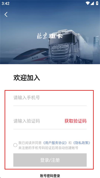 3、在登录页面,填写信息并勾选协议后,点击按钮即可完成账号登录。