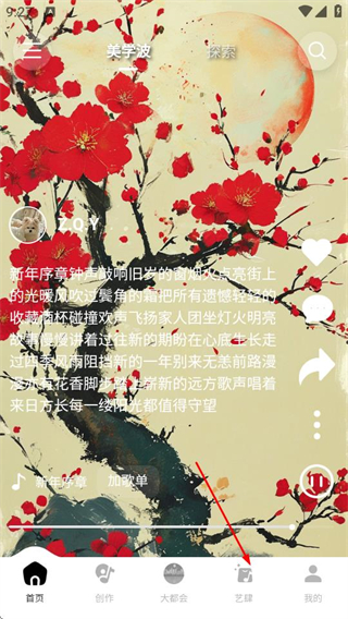 1、进入首页后,点击底部的艺肆选项,可进入艺肆页面。