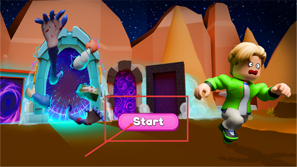 1、看到带怪物手的传送门场景后,点击界面中的【Start】按钮,即可进入含多个传送门的游戏选择界面,开启后续流程。