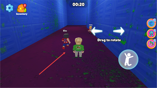 3、在【00:20】计时的通道场景中,跟随Eba-Mellina角色,通过【Drag-to-rotate】操控角色移动,推进关卡进程。