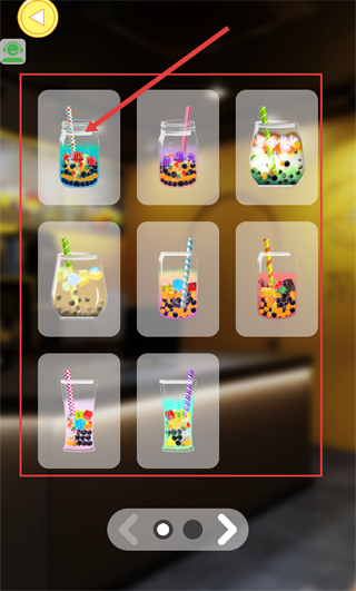 2、进入饮品选择页后,可看到多款含配料的饮品容器,按指引点击对应饮品选项,选定后即可进入后续的制作准备环节。