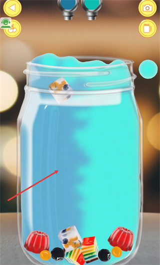 4、在制作环节,通过操作添加对应液体与配料,可看到容器中呈现混合后的饮品形态,完成该步骤即可推进饮品制作的后续流程。