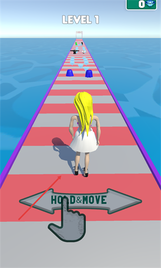 1、进入【LEVEL-1】后,按照界面提示操作【HOLD&MOVE】按钮,控制角色在红白路径上移动,以此开启关卡的推进进程。