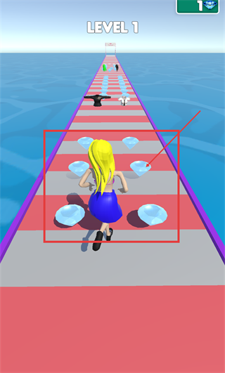 3、继续在【LEVEL-1】的路径上操控角色移动,收集沿途的钻石,收集时会出现彩色特效,钻石数量积累可优化关卡表现。