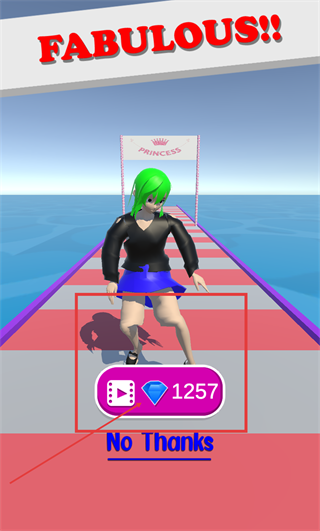4、完成【LEVEL-1】后出现【FABULOUS!!】提示与【PRINCESS】标识,可选择【No-Thanks】跳过奖励视频,顺利结束当前关卡。