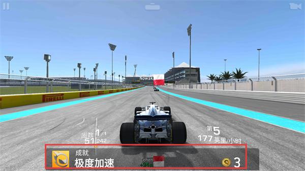 2、在直道段加速,达成【成就-极度加速】获得奖励,同时将速度提升至【177英里/小时】。