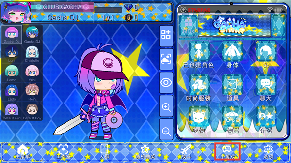 1、在角色界面点击【小游戏】,进入小游戏。