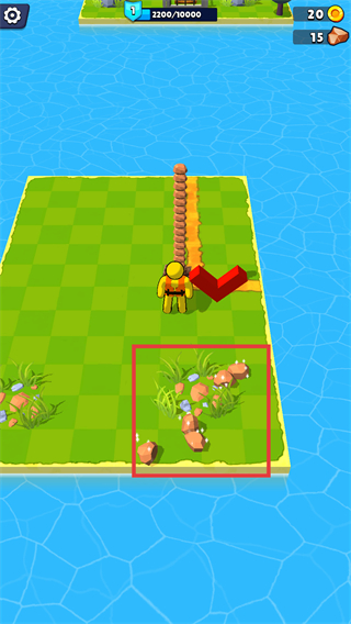 3、移动至矿石区域,收集散布的矿石资源,积累物资的同时拓展可活动的格子区域。