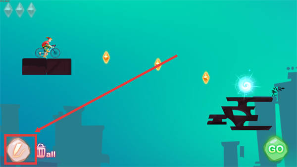 1、在关卡界面点击左下角的画笔按钮,可进行画线连接路线,帮助角色收集途中的【钻石】道具哦。