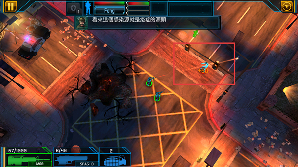 4、根据提示锁定【感染源】目标,操控角色移动至目标区域,集中火力攻击,推进关卡进程。