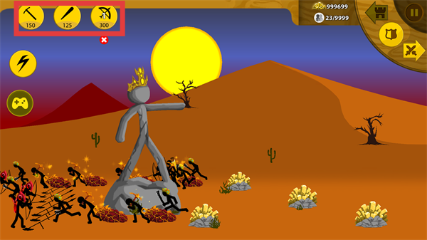 3、战斗中利用【150】【125】【300】对应的兵种生产,指挥部队围绕雕像作战,防守资源点。