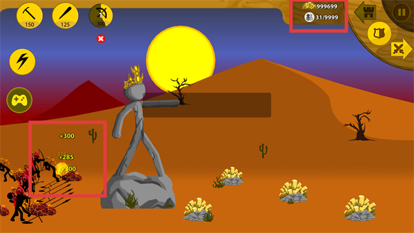 4、击败敌方单位后,可获取【+300】【+285】等资源奖励,提升资源数量至【31-9999】增强战力。