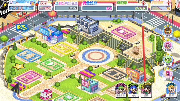 1、签约练习生并学习各种唱歌和跳舞的技能,参加各种巡演以及各种解谜提升公众度以及名气;