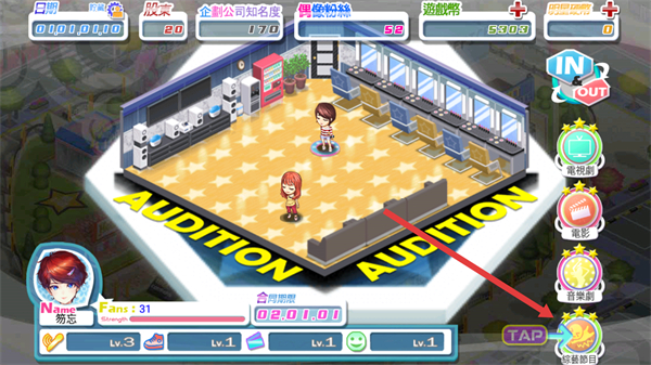 2、在试镜界面右侧,选择综艺节目选项,点击TAP按钮。