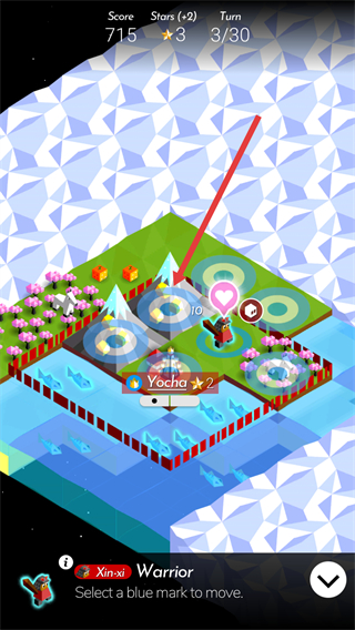 2、选择目标蓝色标记位置,点击该位置完成单位的移动操作推进对局进度。